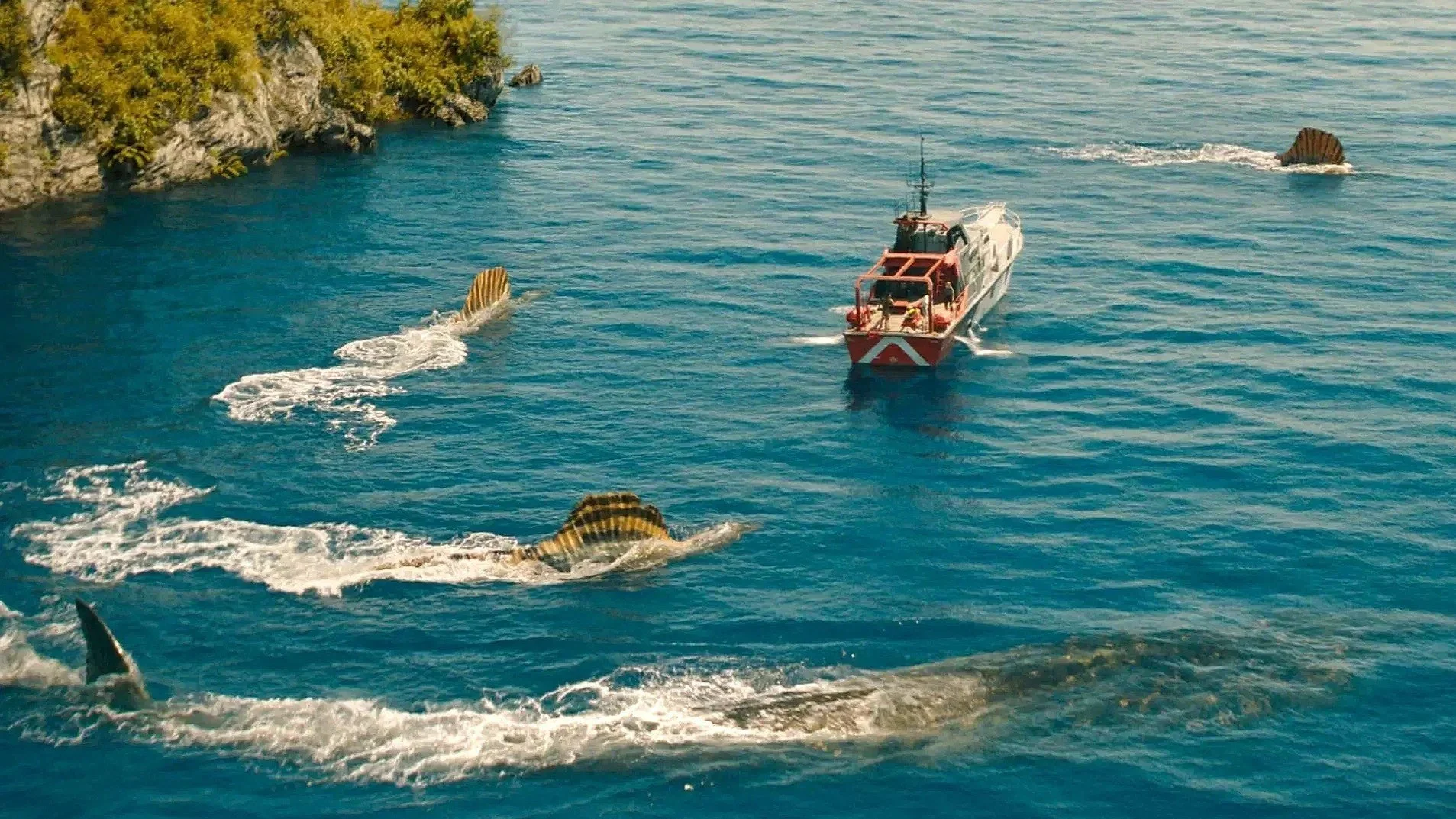 There’s putting on a brave face and there’s being so oblivious to the scenario in the film that you appear to be actors on a stage and not characters in a story. The ability to suspend disbelief is tantamount to a movie like this working and when not even the characters seem to be into what’s going on, it’s hard to get invested in this silly dinosaur kaiju movie. There’s also an outstanding level of incompetency here that is coming from people who are supposed to be at the top of their game. As Zora and Tragic Backstory Boat Guy come in at a multimillion dollar booking fee for this job, you’d expect some amount of core competency designed at keeping people alive on this mission. For example, when taking a boat to a forbidden zone to gather live DNA from a seafaring dinosaur that eclipses the size of an orca (and the Orca) in the form of a mosasaurus, I would ensure that mission critical equipment were stowed with some sort of flotation device. And yet, when the inevitable shipwrecking occurs, Zora and Walking Dinosaur Fact Book scramble to tie life jackets to equipment so they are able to float. So when they do find themselves on a deserted beach, they have lost much of that equipment, including any weapons they could use to defend themselves. I guess $10,000,000 doesn’t buy much anymore these days, such is the plight the shrinking middle class. Eggs are expensive, gas is expensive, and mercenaries under $25 million just aren’t what they used to be.