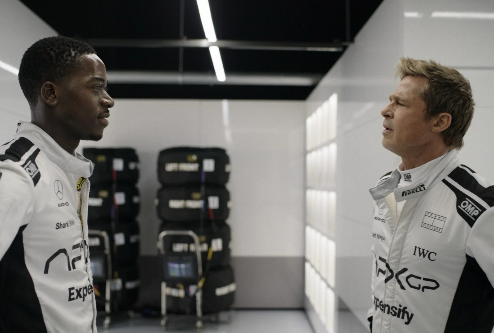 Retired driver, owner of APX GP, and Sonny’s old buddy Ruben Cervantes, played by Javier Bardem (Collateral, Lyle, Lyle, Crocodile), is $350 million in the hole and if he doesn’t deliver a win for his team, which hasn’t won in its nearly 3 year existence and is suddenly without a driver, the board will force a sale and he’ll lose the team. So he turns to similarly aged former rival Sonny Hayes, who hasn’t been behind the wheel of an F1 car in thirty years after he was left in a lifeless heap following a horrific crash as he was chasing down Ayrton Senna. He’s spent those three decades getting divorced, failing as a professional gambler, and racing in one-off contracts for any team that’s willing to pay and doesn’t mind him riding off into the sunset in the camper van in which he lives when the job is done. To put that into perspective, of the 20 current F1 drivers, only six are older than 30 and just two of them are over 40. None are over 50. So if a driver were born on the day Sonny Hayes retired, he’d be on the tail end of his career already by the time Sonny walked into the APX GP paddock and asked for a cup of Sanka. So we’re straining credulity at the very premise of this film, despite the fact that Ruben recites a laundry list of F1 Grand Prix winners over 50 (read: it’s less than a handful of names) trying to justify choosing Sonny. But that line in the film comes off as the writers trying to justify choosing Brad Pitt instead. With the team needing a win in its final nine races or he’s out, Ruben throws his final Hail Mary right at Sonny and the film makes us watch as he hems and haws and decides to join finally after receiving advice from the waitress at the diner where they meet. Of course it’s a foregone conclusion, but the film makes us sit there and wait for something we already know is going to happen. After all, the movie is called F1: The Movie and not Brad Pitt: Van Man Goes to the Diner.