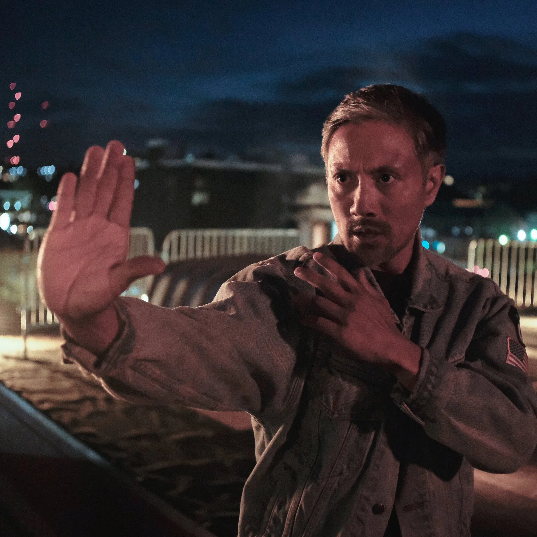Danny, played by Alain Uy (Helstrom), is a divorced dad, running late to pick up his kid. And when he does have him, he’s so busy that he has to cancel their fun day together to go get work done. On the way home, though, he’s jumped in front of his house—not to worry, it’s more of a vibe check than anything else. It’s his old friend Hing, played by Ron Yuan (Mulan, The Accountant), in town because of their Sifu’s death. He’s the one who has to break the news to Danny. At the funeral, still without Jim, they run into Danny’s old nemesis Carter, played by Matthew Page (Enter the Dojo, Odd Thomas), who is in charge of a different school now. There’s a lot of banter here between the Tigers and Carter, some of it quite juvenile, with a lot of cultural appropriation on the part of Carter. It’s played for laughs and it mostly works, but there’s a deeper story behind that which we’ll touch on later. But it’s Carter who drops the penny—the police believe that Sifu Cheung died of a heart attack, but Carter doesn’t buy it. He believes, as the audience knows, that the Sifu was murdered. This sets the three distant disciples on a path to reunite and find Sifu Cheung’s murderer.