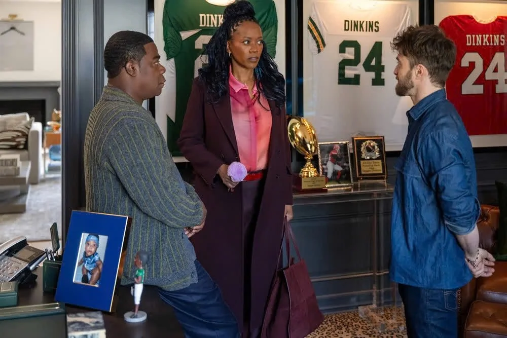 The titular Reggie Dinkins is played by comedy legend Tracy Morgan (SNL, 30 Rock). He’s been a little hit and miss as a headliner, but there’s a reason he’s still a household name. Over many years of doing comedy, he’s really mastered his comedic timing. If you ask me, he’s one of the funniest and most endearingly off the wall former SNL cast members. Reggie is a former New York Jets player who has earned all the plaudits through his career, including several MVP awards. He accomplished just about everything you can accomplish in the NFL, but he has never received even one vote for the Hall of Fame, which is his life’s greatest ambition. Why? Like Pete Rose, he was caught up in a sports betting scandal (from a time when you couldn’t do sports betting on your phone from your bathroom), but I won’t spoil just exactly it was that he was betting on. So he’s been banned for life. But he wants in. He hires Arthur Tobin, a documentary filmmaker, to make a movie about him that Reggie hopes will change the public’s opinion. Tobin, played by Daniel Radcliffe (Miracle Workers, Now You See Me 2), quietly failed his biggest break. After winning an Oscar for one of his documentaries, he was hired on to the biggest project of his life and washed out. So a disgraced footballer and an embarrassed filmmaker team up to redeem each other, in a way.
